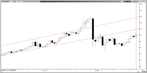 Yükseliş kanalı içerisindeki hareketini sürdürmekte olan USDTRY’de, teknik göstergelerin ürettikleri sinyaller çerçevesinde kademeli yükseliş eğiliminin devamını bekliyoruz. Kısa vadeli görünümde 43,86 seviyesi direnç konumunda yer alırken, bu seviye üzerinde bir günlük kapanış 43,90 – 44 bölgesini gündeme taşıyabilir. Aşağıda ise 43,80, 43,75 ve 43,66 seviyeleri destek konumunda. Göstergeler, kurun yakın vadede 43,75 – 43,90 bandında bir seyir izleyebileceğine işaret ediyor.