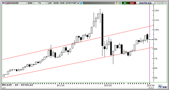 ABD – İran gerilimi sonrasında güvenli liman talebi altına yönelirken, gümüş cephesinde daha kırılgan ve dalgalı bir görünüm öne çıkıyor. Oynaklığın yüksek seyrini koruduğu gümüşte, yukarı yönlü ataklara karşı temkinli duruşumuzu sürdürüyoruz. Bu sabah 90$ civarında fiyatlanan gümüşte 86,22$, 82,65$ ve 80$ seviyeleri destek olarak izlenirken; 90$, 92,75$ ve 95,86$ seviyeleri kısa vadeli direnç bölgeleri konumunda bulunuyor.