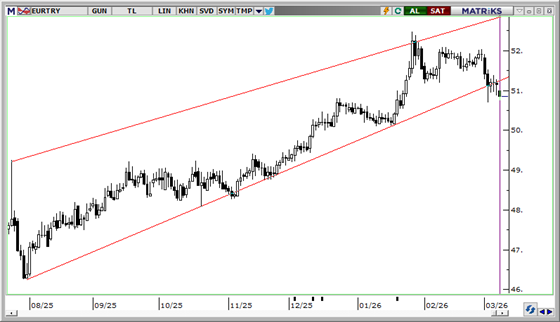 Yurt içinde TCMB’nin sıkı likidite politikası ve yüksek piyasa faizleri EUR/TRY’de yukarı yönlü hareketi sınırlamaya devam ediyor. Kurun 51,00 seviyesinin altına gerilemesiyle birlikte kısa vadeli görünümde 50,70 – 51,20 bandı öne çıkarken, 51,00, 51,20 ve 51,38 direnç; 50,85, 50,70 ve 50,50 seviyeleri destek olarak izlenebilir.