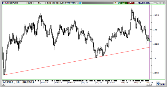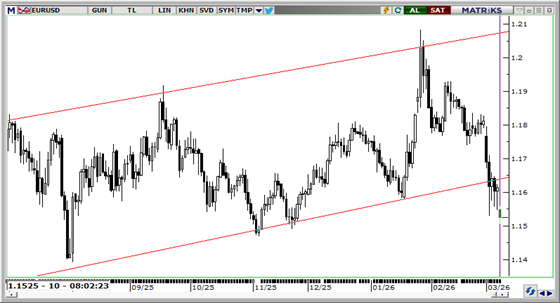 Jeopolitik risk algısının yüksek seyretmesi ve enerji fiyatlarındaki sert yükselişin dolar lehine işleyen güvenli liman talebini beslemesiyle birlikte EUR/USD paritesi 1,1528 seviyesine kadar geri çekildi. Jeopolitik risklerin sürmesi dolara yönelik güvenli liman talebini besleyerek paritedeki baskının bir süre daha devam etmesine yol açabilir. Teknik açıdan bakıldığında, 1,16 eşiği altında kalındıkça zayıf görünümün korunması beklenebilir. Bu çerçevede 1,1510, 1,1490 ve 1,1450 seviyeleri destek, 1,1550, 1,1590 ve 1,1635 seviyeleri ise direnç konumunda.
