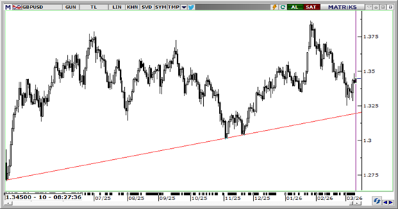EUR/USD güne 1,1632 seviyesinden başlarken, petrol fiyatlarındaki geri çekilme ve güvenli liman talebindeki zayıflama dolar üzerindeki baskıyı hafifletiyor. Orta Doğu kaynaklı riskler tamamen ortadan kalkmasa da, paritede kısa vadede toparlanma eğilimi öne çıkıyor. Teknik görünümde, bugün itibarıyla 1,1660 seviyesinden geçen 200 günlük hareketli ortalama seviyesi ilk direnç, yukarıda 1,1670 ve 1,1700; aşağıda ise 1,1590, 1,1550 ve 1,1510 seviyeleri destek konumunda.