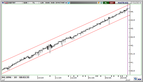 PPK’nın politika faizini %37’de ve koridoru %35,5-%40 bandında sabit bırakmasının ardından USD/TRY 44,19 civarında yukarı yönlü seyrini koruyor. Karar metninde jeopolitik gelişmeler, enerji fiyatları ve likidite koşullarına yapılan vurgu, TCMB’nin temkinli ve sıkı duruşunu sürdüreceğine işaret ediyor. Teknik olarak 44,20 ve 44,35 direnç; 44,10, 44,00 ve 43,90 ise destek olarak takip edilebilir.