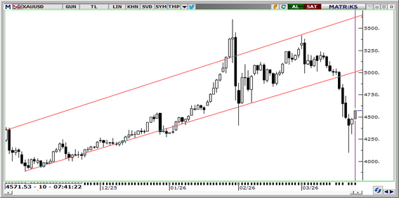 Ons altın bu sabah 4.571$ seviyesinde işlem görüyor. ABD'nin 15 maddelik ateşkes planı ve doların hafif gevşemesi altını yukarı taşırken, İran'ın müzakereleri reddetmesi ve İsrail'in operasyonlara devam kararlılığı güvenli liman talebini diri tutuyor. Jeopolitik risk primi ile diplomasi umutları arasındaki denge altını yüksek seviyelerde desteklemeye devam ediyor. Teknik olarak aşağıda 4.425, 4.375 ve 4.300$ destek; yukarıda ise 4.600$ ve üzeri direnç olarak izlenebilir.