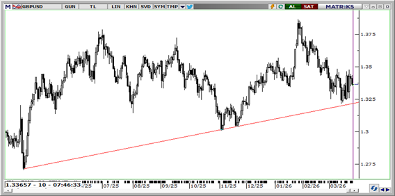 GBPUSD bu sabah 1,3366 seviyesinde. İran'ın ateşkes planını reddetmesi ve ABD'nin bölgeye takviye sevkiyatı, doların güvenli liman talebini diri tutarak sterlin üzerindeki baskıyı koruyor. Hürmüz Boğazı'nın fiilen kapalı kalması İngiltere'nin enerji ithalatçısı konumu nedeniyle pariteye özgü bir kırılganlık yaratmaya devam ederken, Pakistan'daki görüşme ihtimali şimdilik sert satışları frenliyor. Teknik olarak 1,3400, 1,3440 ve 1,3500 direnç; 1,3350, 1,3310 ve 1,3280 destek olarak takip edilebilir.