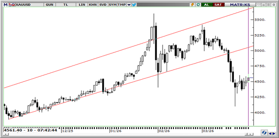 Ons altın bu sabah 4.562$ seviyesinde. Trump'ın savaşı Hürmüz açılmadan sonlandırabileceği sinyali bir yandan iyimserlik yaratsa da, boğazın kapalı kalma ihtimali enflasyon risklerini ve güvenli liman talebini canlı tutuyor. İsrail'in Tahran'da altyapı saldırılarını sürdürmesi ve İran'ın Hayfa rafinerilerini vurması sahadaki tırmanmanın hız kesmediğini gösterirken, DXY'nin 100 üzerinde kalması altındaki yükselişleri sınırlayan başlıca unsur olmaya devam ediyor. Teknik olarak aşağıda 4.500, 4.425, ve 4.375$ destek; yukarıda ise 100 günlük hareketli ortalamanın geçtiği 4.638$ ve 4.700$ seviyeleri direnç olarak izlenebilir.