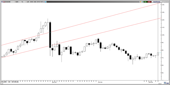 Gümüş yatay hareket devam ediyor. 2 haftalık ateşkesin de etkisiyle güvenli liman arayışlarında kısmi azalma sonucunda, gümüşte yatay hareketin bir süre daha devam etmesi muhtemel görülüyor. 76,40$ yakınından geçen 100 günlük ortalama, kısa vadede önemli direnç konumunda. Yükselişlerin devamlılığı açısından bu ortalama üzerinde günlük kapanışlar görmemiz önemli. Teknik olarak 75,00, 72,00 ve 70,00$ destek; 80,00, 82,00 ve 85,00$ direnç olarak takip edilebilir.