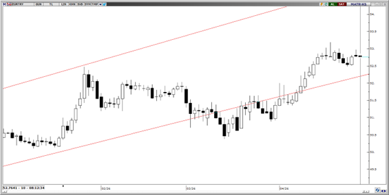 52,50 seviyesinden bulduğu destekle yukarı yönlü hareketini hızlandıran parite, bu bölgeden gelen alımların katkısıyla kısa vadeli pozitif eğilimini sürüyor. Teknik göstergeler, 52,50 seviyesinin altına sarkmaların kalıcılık kazanmasının mevcut görünümde sınırlı bir olasılık olduğuna işaret ederken, kısa vadede 52,50 – 53,50 aralığında dalgalı ancak yukarı yönlü eğilimin baskın olduğu bir fiyatlama öne çıkmakta. Yukarıda 52,97 ve 53,13 seviyeleri direnç olarak öne çıkarken, aşağıda 52,50, 52,35 ve 52,20 seviyeleri destek olarak takip edilebilir.