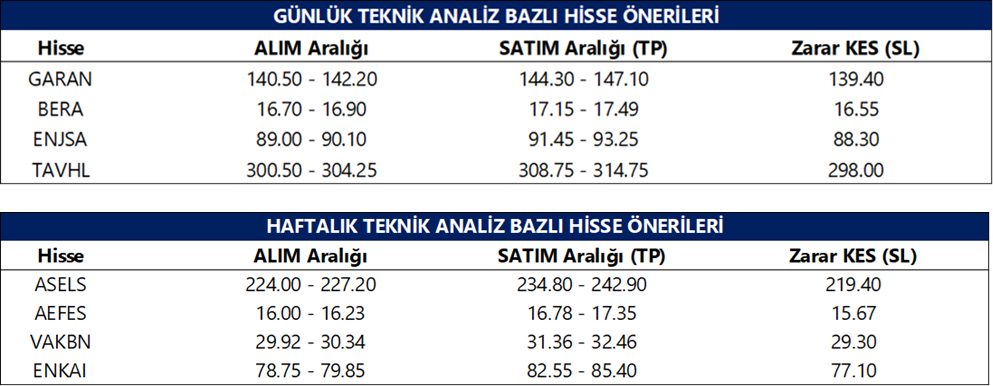 Günlük Teknik Analiz Bazlı Hisse Önerileri