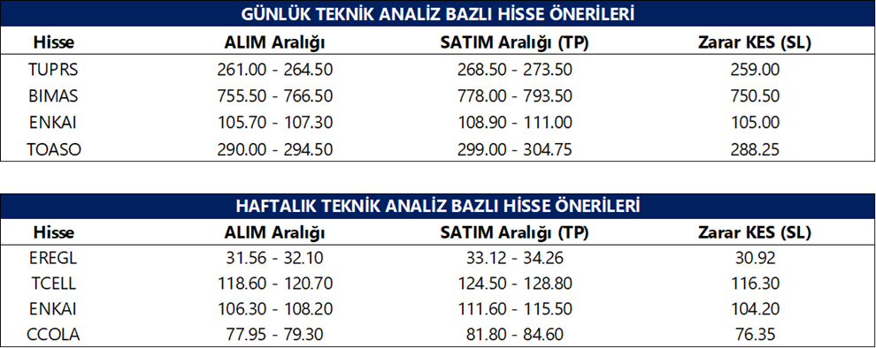 Günlük Teknik Analiz Bazlı Hisse Önerileri
