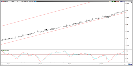 52,5 seviyesinden destek bulan EURTRY’de, aşağı yönlü fiyat hareketinin yavaşladığını görüyoruz. Teknik göstergeler 52,50 seviyesinin altında kapanışlar gelmediği taktirde bu bölgeden gerçekleşebilecek tepki alımları ile fiyatın tekrardan yükseliş eğilimine geçme ihtimalinin kuvvetli olduğuna işaret ediyor. Teknik göstergeler, kısa vadede 52,50 – 53,50 bandında bir hareketin ön planda olabileceğine işaret ediyor. Yukarıda 52,74, 52,9755 ve 53,13 seviyeleri direnç, aşağıda ise 52,50, 52,35 ve 52,20 seviyeleri destek olarak takip edilecek.