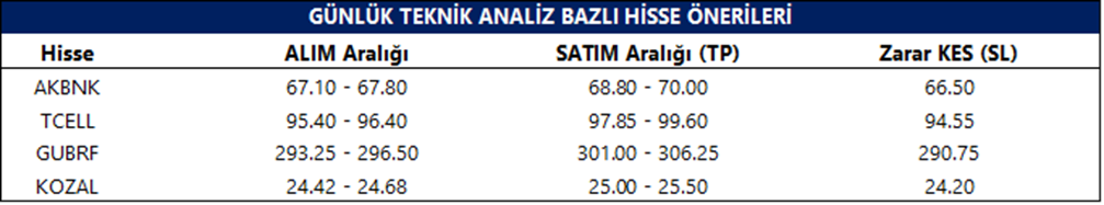 Günlük Teknik Analiz Bazlı Hisse Önerileri