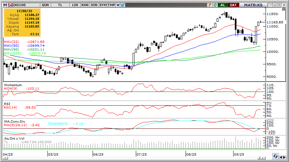 Günaydın. Fed beklendiği gibi politika faiz bandını 25 baz puan indirerek %4,25 – 4,50 aralığından %4,00 – 4,25 aralığına çekti. Fed yöneticilerinin gelecek döneme dair tahminlerinde ise daha düşük politika faizi, daha yüksek büyüme ve enflasyon ile hafif gerileyen bir işsizlik oranı patikası öngörülüyor. Fed Başkanı Powell’ın mesajlarında ise toplantı bazlı karar alınacağı, otopilotta ve sürekli bir faiz indirimi patikasının kesin olmadığı, ancak istihdamda belirgin bozulma olduğu vurguları öne çıkarken; daha önce “belirsiz” olarak nitelediği gümrük tarifelerinin enflasyonist etkilerinin dün “kısa süreli ve geçici” olarak nitelemesi de ayrıca dikkat çekti. Genel olarak bakıldığında, beklentilere paralel bir Fed toplantısını geride bıraktık diyebiliriz. Wall Street’te dün akşam Fed sonrası kısmi kar satışları olsa da ABD ve Avrupa vadelileri ile Asya borsaları bu sabah pozitif. Borsa İstanbul’da 11.200 civarında tutunma devam ediyor. Küresel risk iştahının da desteği ile BIST’te 11.250 / 11.300 direnci üzerine yönelimin devam edebileceğini, 11.500 / 12.000 bölgesinin ise halen kısa vadeli hedef konumunda olduğunu düşünüyoruz. 11.000 ve 10.850 ise destek olarak izlenebilir. Günün ajandası sakin. İçeride TCMB rezervleri ve haftalık yabancı işlemleri, ABD’de işsizlik maaşı başvuruları ve büyüme odaklı bazı veriler izlenecek. Türkiye 5 yıl vadeli CDS primlerinde gerileme devam ediyor. Bu sabah 239 baz puanda fiyatlamalar görüyoruz. Burada gerilemenin devamını ve bunun da XBANK Bankacılık Endeksi üzerinde destekleyici olmasını bekliyoruz. PPK’dan faiz indirimleri ve CDS’lerde gerilemenin sürmesi ile hedef fiyatlarda yukarı revizyonlar görebiliriz.
