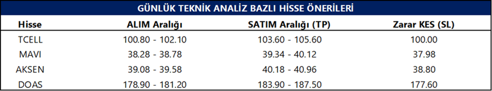 Günlük Teknik Analiz Bazlı Hisse Önerileri