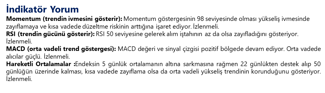Altın’da orta-uzun vadede pozitif görüşümüz sürüyor. Ayrıca yakın vade için 3.700-4000 bandında bir hareket bekliyoruz. Göstergeler, kısa vadede 3.750$ altına kalıcı sarkma olasılığının sınırlı olduğuna işaret ediyor. Düzeltmelerde 3.850–3.870 bandından beklenen kâr satışları geldi. Aşağıda 3.830$, 3.790$ ve 3.735$ kısa vadeli destekler. Bu nedenle geri çekilmeleri sınırlı görüp alım fırsatı olarak değerlendiriyoruz. 3.875–3.900$ ise direnç bölgesi.