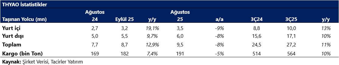 THYAO (Sınırlı Pozitif): Türk Hava Yolları, eylül ayı yolcu istatistiklerini açıkladı. Buna göre,