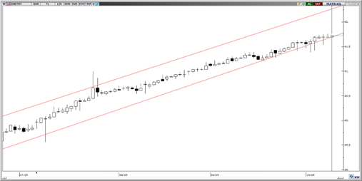 USDTRY’de süregelen yukarı yönlü eğilim, günlük periyotta takip edilen yükseliş kanalıyla paralel bir görünüm ortaya koyuyor. Teknik açıdan değerlendirildiğinde, kısa vadede 41,20–42 bandındaki fiyatlamalar öne çıkarken, genel tablo kademeli yükseliş trendinin korunduğuna ve 41,20 seviyesinin altına gerilemenin güç olduğuna işaret ediyor. Destek seviyeleri olarak 41,40 ve 41,20 seviyeleri takip edilebilir.