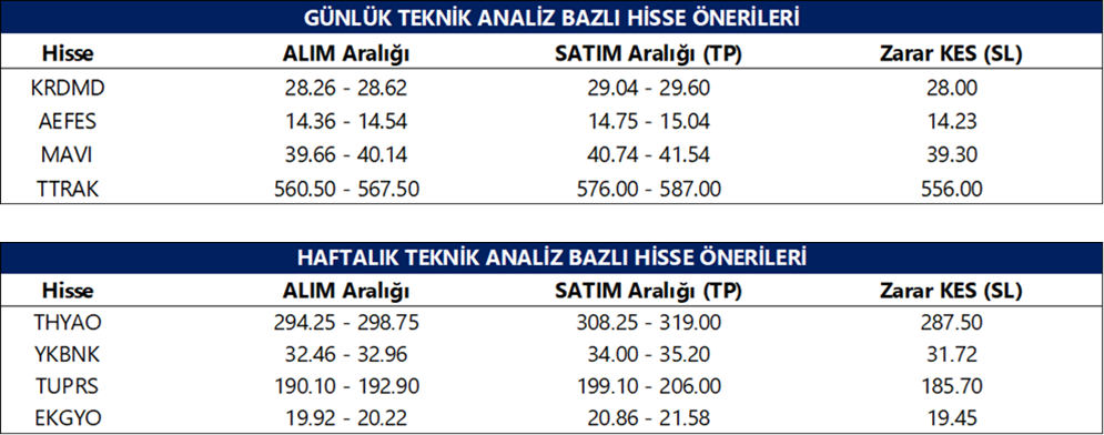 Günlük Teknik Analiz Bazlı Hisse Önerileri