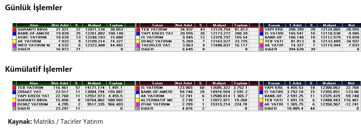 ARCLK (Nötr): Şirket, 3Ç25 sonuçlarını 2.055 milyon TL net zarar ile açıkladı. Açıklanan zarar, piyasa beklentisi olan -1.100 milyon TL’nin ve kurum beklentimiz olan -1.432 milyon TL’nin üzerinde gerçekleşti. Şirket geçen yılın aynı döneminde 5.592 milyon TL zarar açıklamıştı. Net satışlar yıllık %11 düşüşle< 124.446 milyon TL seviyesinde oluştu ve 125.171 milyon TL olan piyasa beklentisiyle uyumlu gerçekleşti. FAVÖK, geçen yılın aynı dönemine göre %39 artışla 8.577 milyon TL’ye ulaştı ve 8.808 milyon TL’lik piyasa beklentisine paralel gerçekleşti. FAVÖK marjı ise yıllık 249 baz puan artışla %6,9 seviyesine yükselerek operasyonel tarafta iyileşmeye işaret etti.