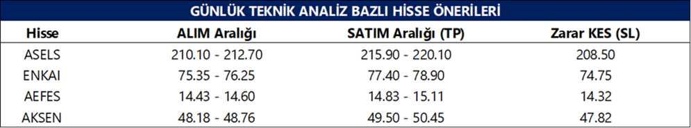 Günlük Teknik Analiz Bazlı Hisse Önerileri