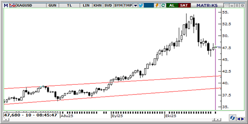 Ons altınla birlikte gümüşte de geri çekilme hareketleri görüldü. Ons gümüşte 47,00$ seviyesi kısa vadeli destek alanı olarak önemini koruyor. Son aylarda dolar bazında yaklaşık %50 oranında gerçekleşen güçlü değer artışının ardından teknik göstergeler, olası kâr realizasyonlarının hızlı şekilde gündeme gelebileceğine işaret ediyor. Yukarı yönlü hareketlerin devamı halinde ise 48,70$ seviyesi ilk direnç bölgesi olarak öne çıkıyor.