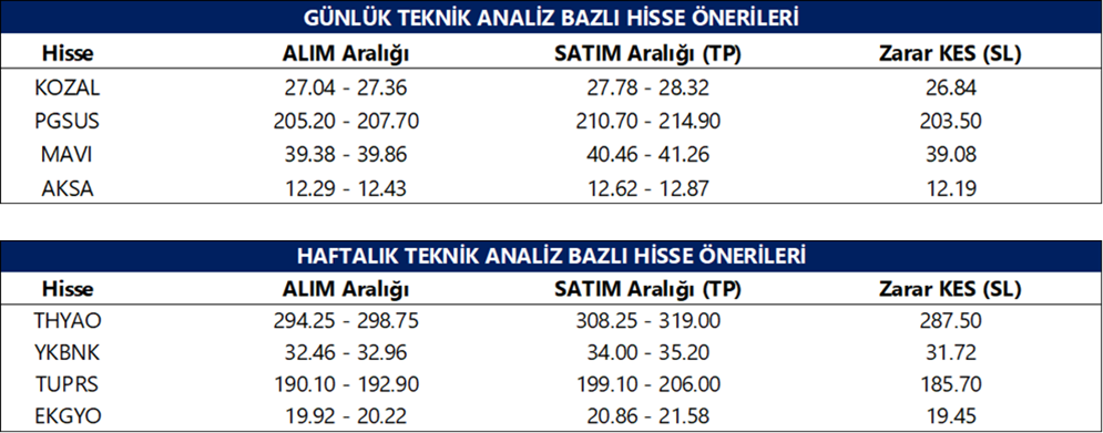 Günlük Teknik Analiz Bazlı Hisse Önerileri