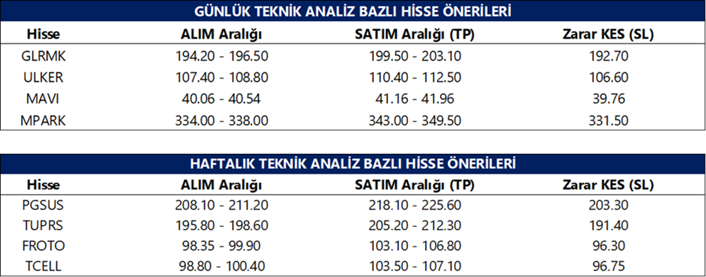 Günlük Teknik Analiz Bazlı Hisse Önerileri