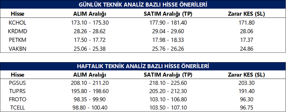 Günlük Teknik Analiz Bazlı Hisse Önerileri