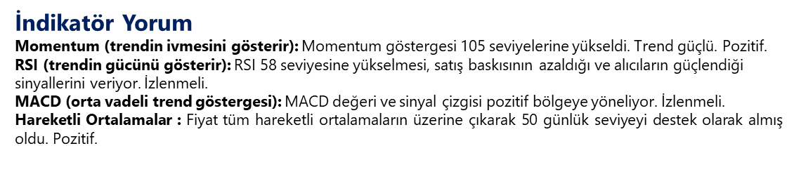 Kıymetli madenlerin genel seyrine paralel şekilde, ons gümüş fiyatlarında da yüksek volatilite ardından dengelenme eğilimi izliyoruz. Gümüş fiyatları bu 48$’ın hemen altında şekillenirken momentum göstergeleri halen negatif bölgede. Sanayi metalleri arasında hem yatırım hem üretim talebiyle öne çıkan gümüşte, küresel risk iştahındaki dalgalanmalara rağmen ana eğilimin yukarı yönlü kalmaya devam edeceğini düşünüyoruz. Teknik açıdan 49,40$ direnç; 47,20$ ve 45,55$ destek olarak takip edilebilir.