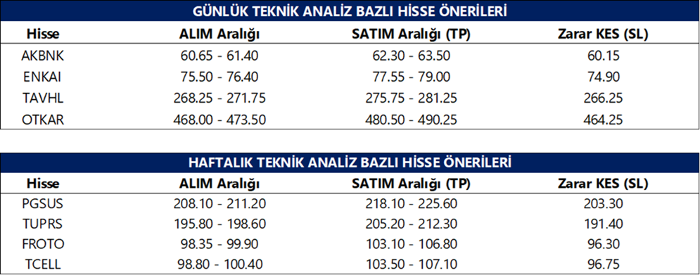 Günlük Teknik Analiz Bazlı Hisse Önerileri