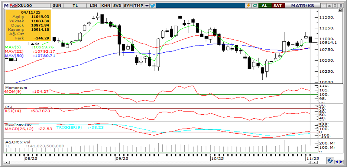Günaydın. ABD’de teknoloji şirketleri öncülüğünde gelen satışlar dün borsa endekslerinde %2’lere varan geri çekilmeler yarattı. Bu sabah da, ABD ve Avrupa vadelileri ile Asya borsalarında satışlar devam ediyor. Bu anlamda küresel risk iştahı oldukça zayıf. Borsa İstanbul'da dün %1,3 düşüş yaşadık ve dışarıdaki baskıyı içeride de bir miktar fiyatladık. BIST 100 endeksi yeniden 11.000 altına geldi. Küresel risk iştahındaki zayıflığın baskısı bugün de devam edebilir, ancak 10.700 / 10.800 destek bölgesi üzerinde tutunmanın devam edeceğini düşünüyoruz. 11.150 ise halen direnç konumunda. Günün ajandasında Avrupa ve ABD PMI verileri ile ABD’de özel sektör istihdam verisi izlenecek. Türkiye 5 yıl vadeli CDS primleri güne 247 baz puandan başlıyor. CDS’lerde yaşanan son artışın daha çok küresel CDS fiyatlamaları paralelinde olduğunu, Türkiye’ye özel bir fiyatlamayı yansıtmadığını düşünüyoruz.
