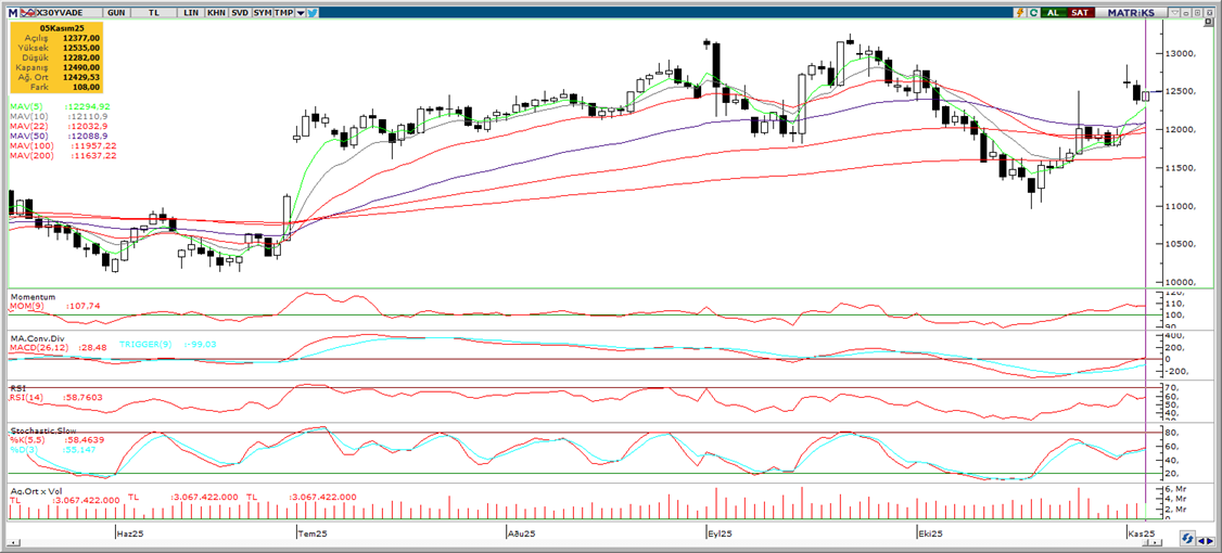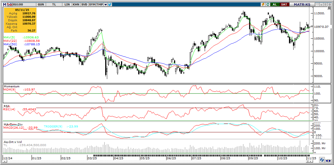 Günaydın. Küresel risk iştahı bu sabah dengeli. ABD’de dün teknoloji şirketlerine gelen alımların ardından ABD ve Avrupa vadelileri bu sabah yatay, Asya’da ise alımlar devam ediyor. ABD’de hükümetin kapalılık hali (government shutdown) 37. gününe girerek tarihin en uzun kapalılık süresine işaret ederken, bu sürecin ülke ekonomisine şu ana kadar ki maliyeti de 75 – 150 milyar dolar arasında hesaplanıyor. Ek olarak, 4Ç25 büyümesi üzerinde de belirgin bir aşağı yönlü baskı bekleniyor. Diğer yandan, Trump yönetiminin uyguladığı gümrük tarifeleri de ABD Yüksek Mahkemesi tarafından “başkanın acil durum yetkilerini aşıp aşmadığı” çerçevesinde değerlendiriliyor. Dün 2,5 saat süren bir oturumda tarafların savunmaları dinlendi. Borsa İstanbul’a baktığımızda, BIST 100 Endeksi dün %0.52 yükselirken endekse en fazla pozitif katkı sağlayan ilk beş şirket TUPRS, DSTKF, TTKOM, YKBNK, MAGEN oldu. Son bir haftada düzenli para girişi ile dikkat çeken şirketler ise TUPRS, MGROS, AKBNK ve CCOLA. Günün ajandasında içeride TCMB rezervleri ve haftalık yabancı işlemleri izlenecek. Avrupa’da perakende satışlar, ABD’de ise toptan satış stokları ve Fed üyelerinden gelecek açıklamalar takip edilecek. Türkiye 5 yıl vadeli CDS primleri güne 244 baz puandan başlıyor.