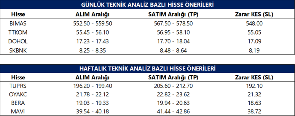 Günlük Teknik Analiz Bazlı Hisse Önerileri