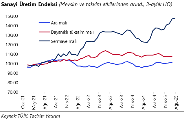 Dış ticaret verileri, sanayi üretimi tahminlerimiz açısından yol gösterici nitelikte. Eylül verilerinde altın ve enerji harici ara malı ithalatı aylık %13,6, yıllık ise %7,1 artış gösterdi. Diğer bir önemli öncü gösterge olan İstanbul Sanayi Odası (İSO) Türkiye İmalat PMI ise eylül ayında 47,3 seviyesinden 46,7’ye geriledi. Böylelikle yılın ikinci çeyreğinde ortalama 47,06 seviyesinde oluşan imalat PMI, üçüncü çeyrekte ortalama 46,63 seviyesine geriledi. Öncü sinyaller doğrultusunda eylül ayında mevsimsel etkilerden arındırılmış aylık sanayi üretiminin daralma bölgesine geçebileceğini, takvim etkilerinden arındırmış sanayi üretiminin ise yıllık bazda önceki aya göre gerilemesini beklemekteyiz. Hatırlanacağı üzere ağustos ayında mevsim ve takvim etkilerinden arındırılmış sanayi üretimi aylık bazda %0,4, takvim etkilerinden arındırılmış sanayi üretimi ise yıllık bazda %7,1 artış kaydetmişti.