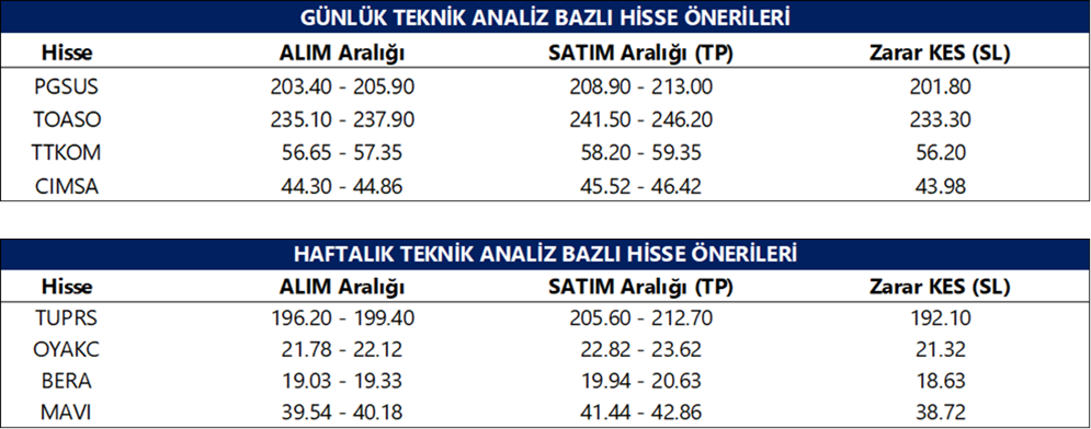Günlük Teknik Analiz Bazlı Hisse Önerileri