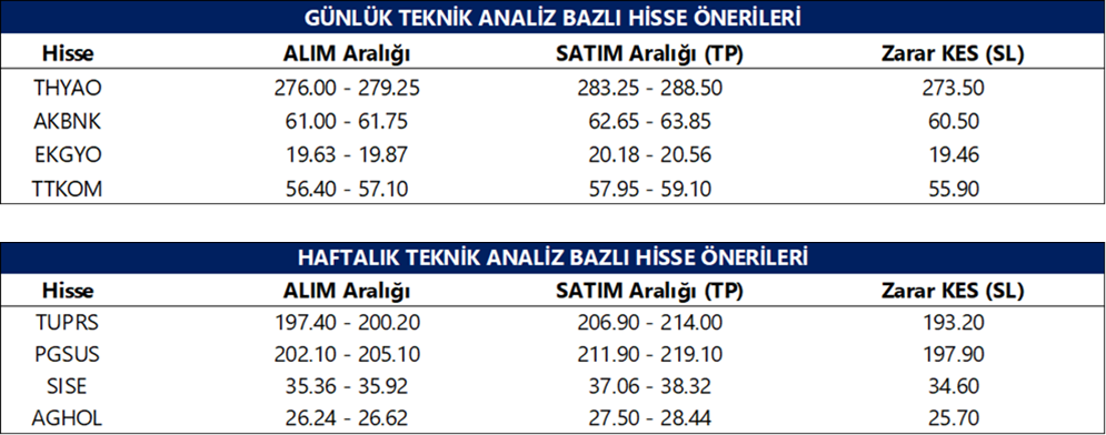 Günlük Teknik Analiz Bazlı Hisse Önerileri