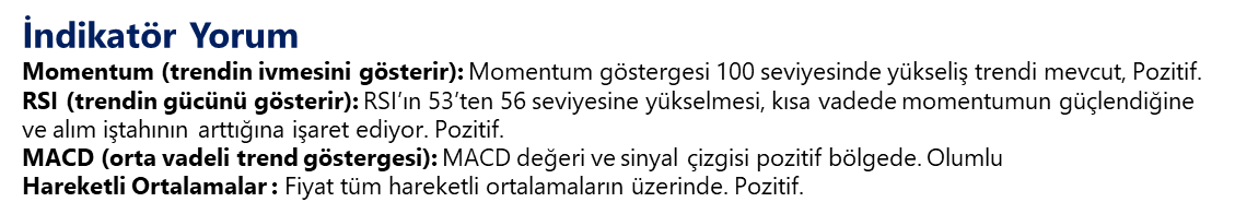 Teknik indikatörler 4.215 $/ons seviyesinin üzerinde fiyatın kalıcı olması halinde, yukarı yönlü hareketin 4.375 $/ons seviyesine devam edebileceğini gösteriyor. Kısa vadede. 4.200 ve 4.140 $/ons seviyeleri ise destek konumunda.