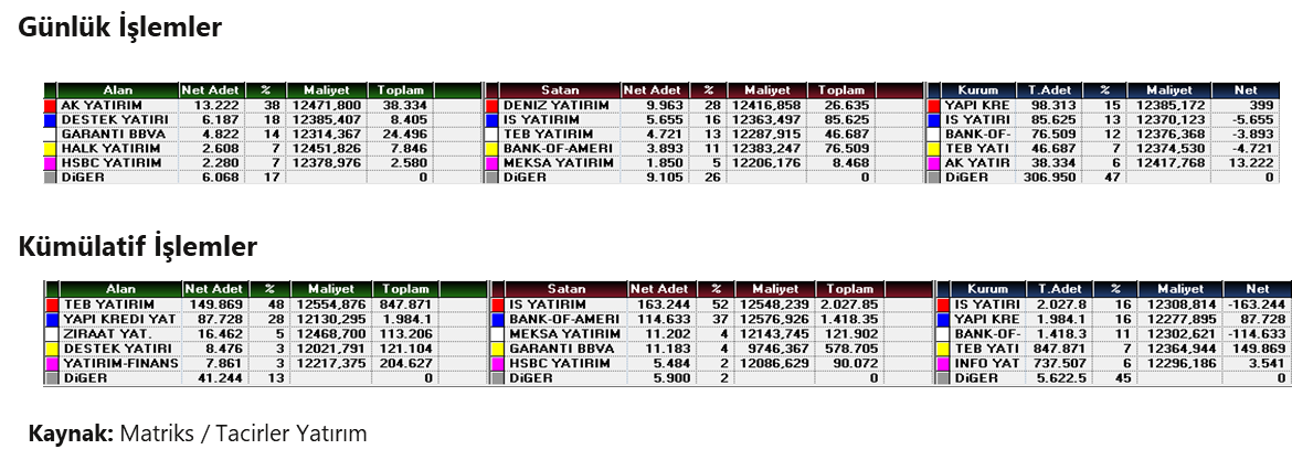 RALYH: Şirket, geri alım programı kapsamında elinde bulunan 1,1 milyon adet payı bugün 195 TL fiyattan sattı. İşlem sonrası şirketin portföyünde 278 bin adet geri alınmış pay kaldı.