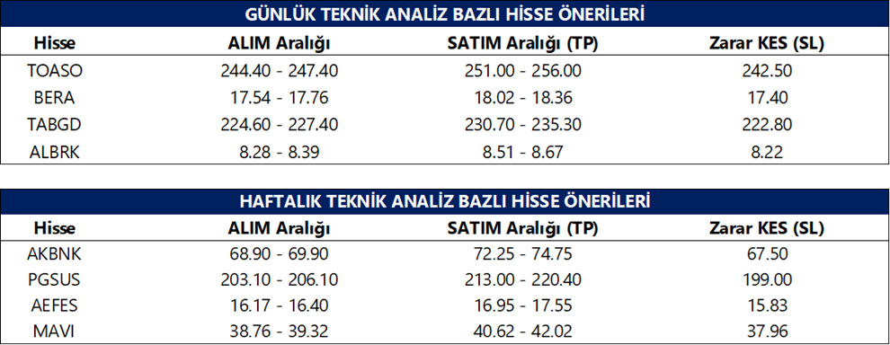 Günlük Teknik Analiz Bazlı Hisse Önerileri