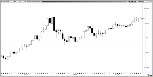 4.300–4.350 bandı içerisinde hareketine devam edip yön arayan altın, bu sabah 4.335 seviyesinden işlem görüyor. Teknik göstergeler, altının yeni bir tarihi zirve yapma olasılığının kuvvetli olduğuna işaret ediyor. Olası geri çekilme yaşanması durumunda 4.240 seviyesinin destek görevi görmesi muhtemel. 4.240, 4.140 ve 4.085 seviyeleri destek, 4.335 ve 4.380 seviyeleri ise direnç olarak takip edilebilir.