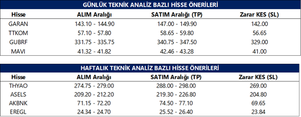 Günlük Teknik Analiz Bazlı Hisse Önerileri