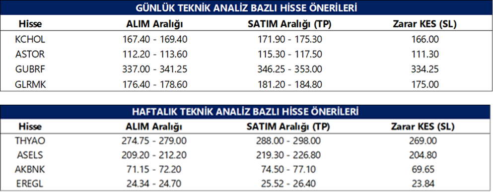 Günlük Teknik Analiz Bazlı Hisse Önerileri