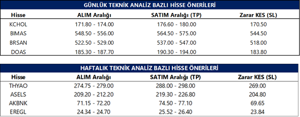 Günlük Teknik Analiz Bazlı Hisse Önerileri