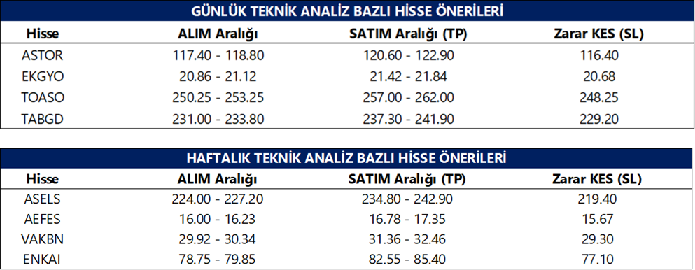 Günlük Teknik Analiz Bazlı Hisse Önerileri