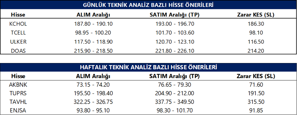 Günlük Teknik Analiz Bazlı Hisse Önerileri