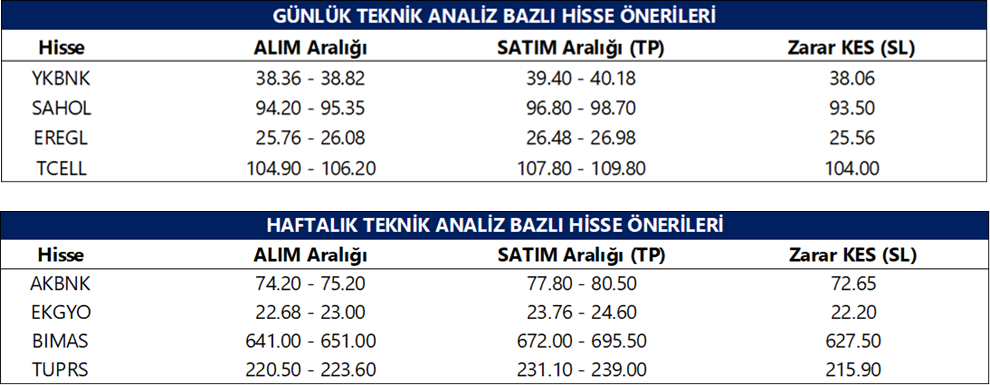 Günlük Teknik Analiz Bazlı Hisse Önerileri