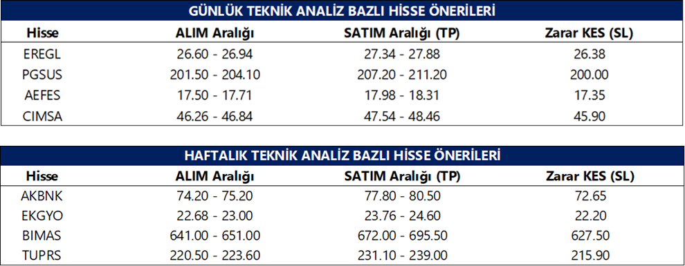 Günlük Teknik Analiz Bazlı Hisse Önerileri