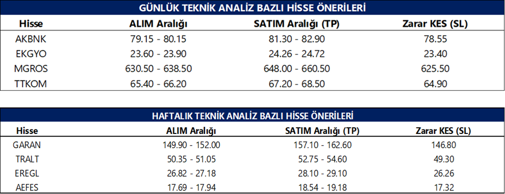 Günlük Teknik Analiz Bazlı Hisse Önerileri