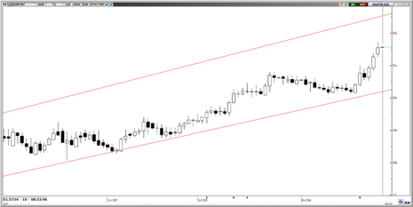 Yükselen kanalın üst bandına hareketini devam ettiren parite bu sabah 51,57 seviyesinden işlem görüyor. Teknik görünüm, yakın vadede 51,00 seviyesi altına kalıcı fiyat hareketleri gerçekleşme ihtimalinin zayıf olduğunu ve kısa vadede yukarı yönlü hareketin 52,50 seviyesine kadar devam edebileceğinin gösteriyor. 50,00, 49,50 ve 49,25 seviyeleri destek; 51,75 ve 52,50 seviyeleri direnç olarak takip edilebilir.