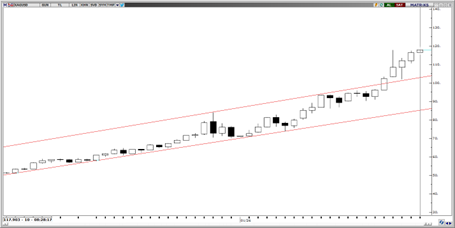 Gümüş 119,43 seviyesini görerek yeni tarihi zirvesini tazelemiş durumda. Teknik indikatörler, yakın vadede 100$ – 120$ bandında hareket ihtimalinin kuvvetli olduğuna işaret ederken, kanal üst bandına denk gelen 105$ seviyesinin olası geri çekilmelerde takip edilmesi gereken bir seviye olduğunu göstermekte. Yukarıda 120$ seviyesi direnç olarak izlenirken, aşağıda 106,45$, 105$ ve 103,50$ seviyeleri destek olarak takip edilebilir.