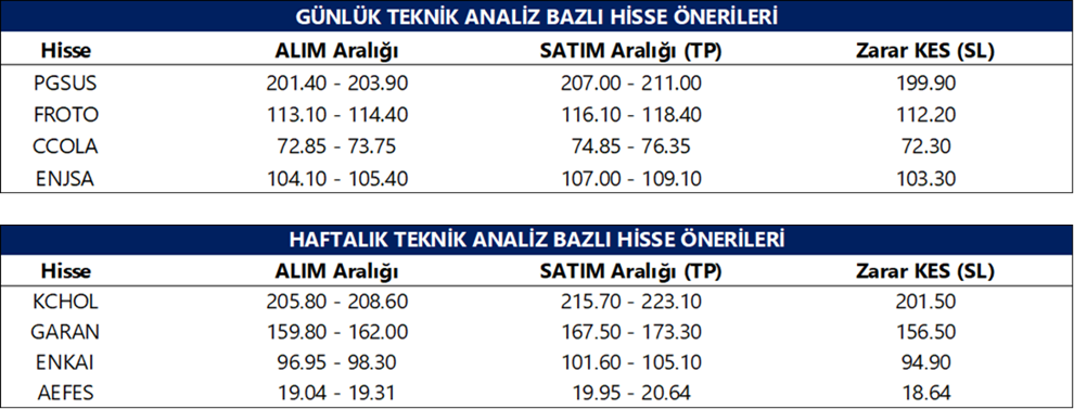 Günlük Teknik Analiz Bazlı Hisse Önerileri